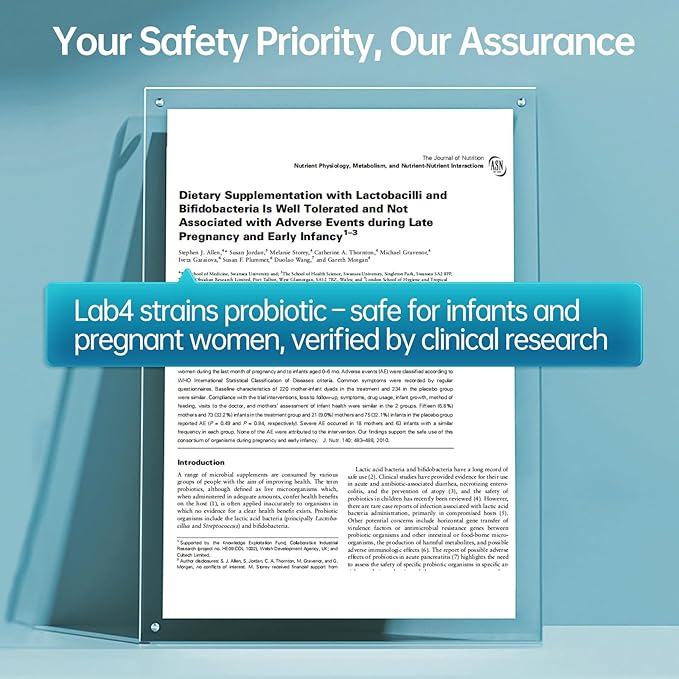 - SAFE FOR DIGESTIVE & GUT HEALTH: In 2012, Lab4 strains received special approval for clinical trials with pregnant women, making them a trusted daily probiotic choice for both women and men. Suitable for long-term use to boost immune function, support a healthy digestive system, and alleviate GI upset