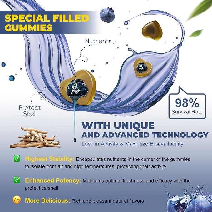 - Upgraded Filled Gummies: Newly upgraded sugar-free.Totaria Ashawagandha filled gummies is a special form of gummies. Compared to traditional gummies, Ashwagandha Magnesium filled gummies are packed with central nutrients that lock in activity and stability, giving you the highest bioavailability and absorption. (Note: Our product is all-natural, preserving its original color and flavor to ensure maximum health benefits.)