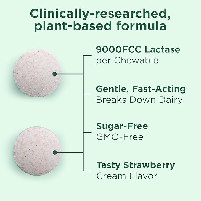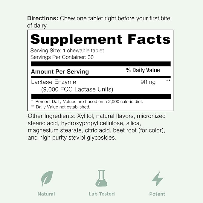 - COMPREHENSIVE DAIRY DIGESTION SUPPORT: Yuve’s extra-strength chewable lactase enzyme tablets work as lactose intolerance pills and dairy pills for lactose intolerance, helping break down lactose, casein, and fats for total digestive comfort. Perfect for those seeking lactose pills or lactose pills for adults to enjoy dairy again.