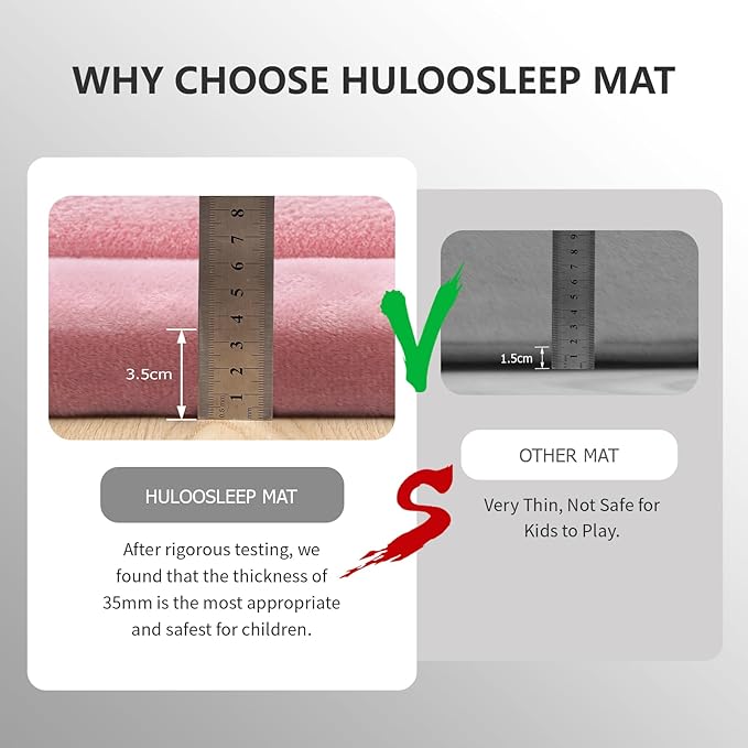 - 【FITS TO MULTIPLE OCCASION】:It can be used as a yoga mat for exercise, a tatami rug for a traditional Japanese style, and is compatible with floor heating. It provides a comfortable spot for adults to relax and watch TV, as well as a pet-friendly cushion for your furry friends to sleep on. The design helps absorb sound, reducing noise in busy homes. With a thickness of 35mm, this kids' play mat ensures your bedroom or living room is an incredibly comfortable personal space. Unlike most baby play mats made of solid plastic that clash with home decor, the HulooSleep Crawling Mat elegantly addresses this issue