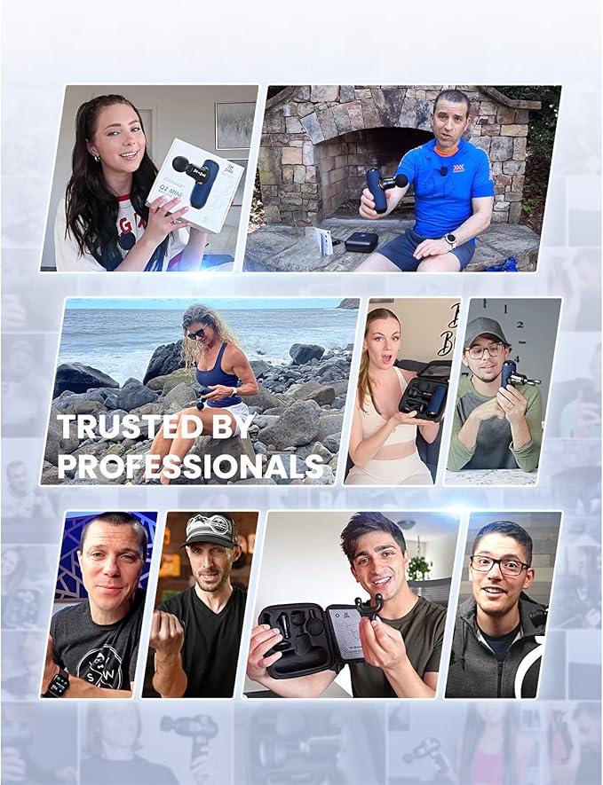 - The Most Compact Design Ever: Q2 Mini Massage Gun combines power and portability (5.7”L x 3.4”W x 1.8”H, 0.95lb/0.43kg) in a truly pocket-sized design. Its lightweight, ergonomic design ensures ease of use, while the quiet yet powerful motor provides targeted relief anytime, anywhere. Fits easily in handbags, gym bags, or luggage. Perfect for athletes, office workers, or anyone seeking on-the-go recovery, the Q2 Mini is your ultimate companion for professional-grade therapy in a compact form.