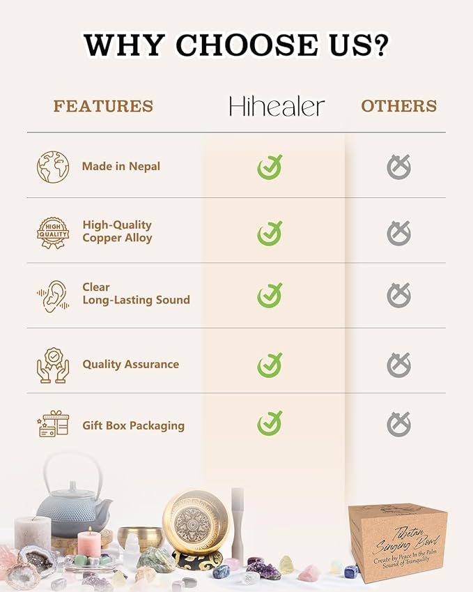 - Handcrafted by Nepalese Artisans: Each bowl is hand-hammered by skilled local artisans in Nepal using traditional techniques; This craftsmanship creates a unique tone and texture—no two bowls are exactly alike, just like you