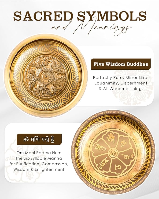 Tibetan Singing Bowls, Authentic Meditation Sound Bowls Handcrafted in Nepal for Yoga, Chakra Healing, Mindfulness, Self Care Spiritual Gifts for Women