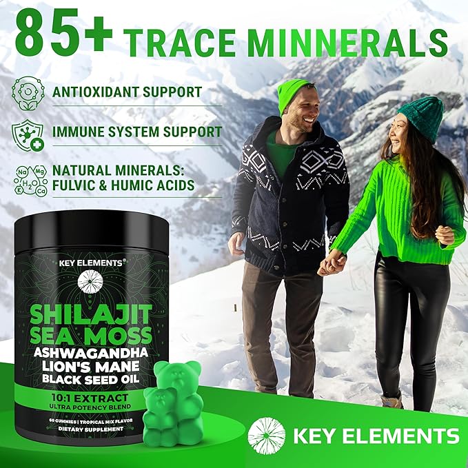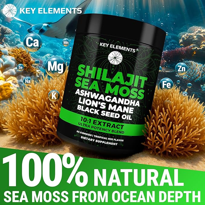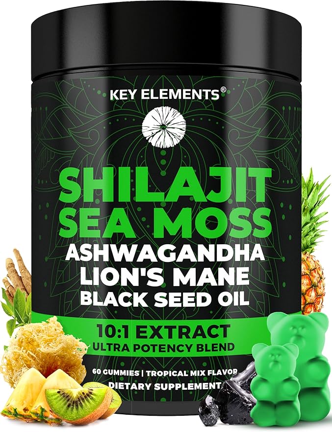 - ๐ Key Elements introduces Shilajit gummies, with Sea Moss gummies, Ashwagandha supplements, Lion's Mane extract & organic Black Seed Oil. From Himalayan mountains to ocean depths packed with yummy mixed tropical fruits.