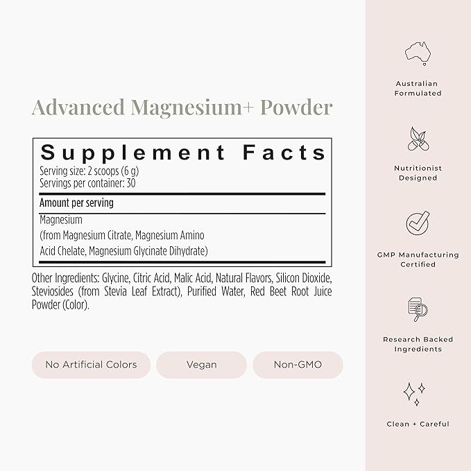 - Three Types Of Magnesium: Each serving is balanced with three different types of magnesium: glycinate, citrate, and amino acid chelate.
