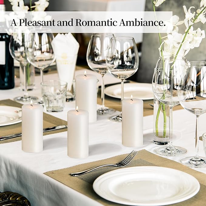 - GREAT VALUE SET: Each White unscented pillar candle set comes with 10 pack candles of 2''x4''. Pillar candle set comes wrapped in a sturdy divided cardboard box to ensure candles arrive neatly packaged and undamaged.