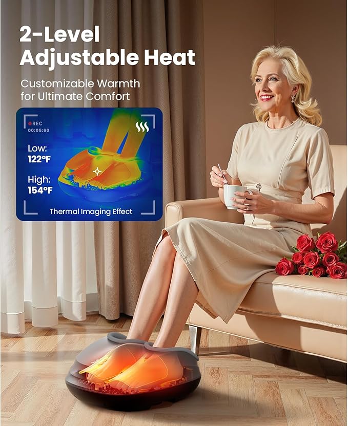 - Soothing Heating Relief: Transform tired feet with 2 customizable heat settings(Low-122°F, High-154°F)! Ideal for women who wear heels or anyone on their feet all day, this heated foot massager melts away stress and tension. Perfect for unwinding after a long day or warming up in colder weather, it boosts blood circulation and soothes aches. Whether at home or the office, enjoy instant comfort and relaxation. Treat your feet to the care they deserve—ultimate relief is just a click away!