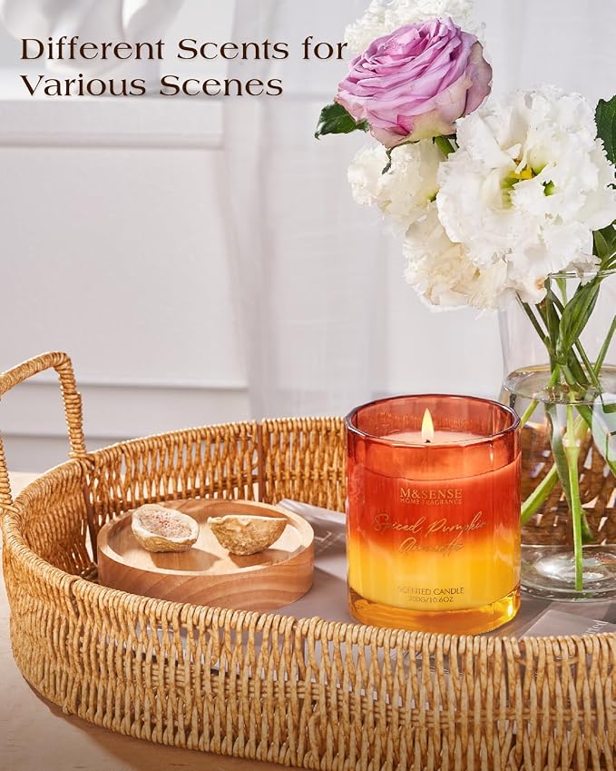 M&SENSE Spiced Pumpkin Fall Scented Candles Natural Soy Wax Non Toxic, 10.6oz 60 Hours Long Lasting Slow Burning Fall Scent Candle for Halloween Thanksgiving Holiday