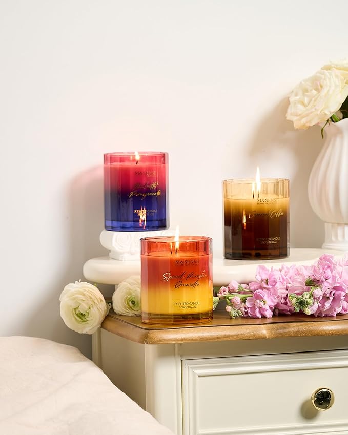 M&SENSE Midnight Pomegranate Scented Candles for Home, 10.6oz 60 Hours Natural Soy Wax Clean Burning Aromatherapy Candle for Thanksgiving Christmas Home Decor