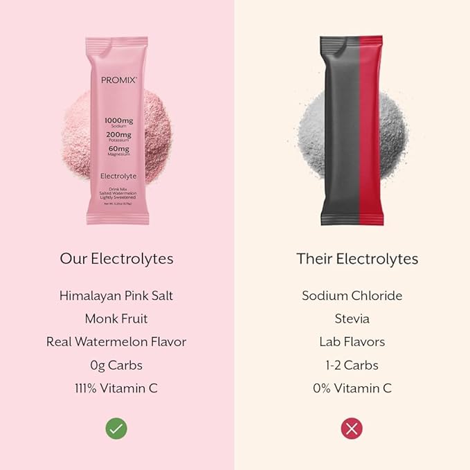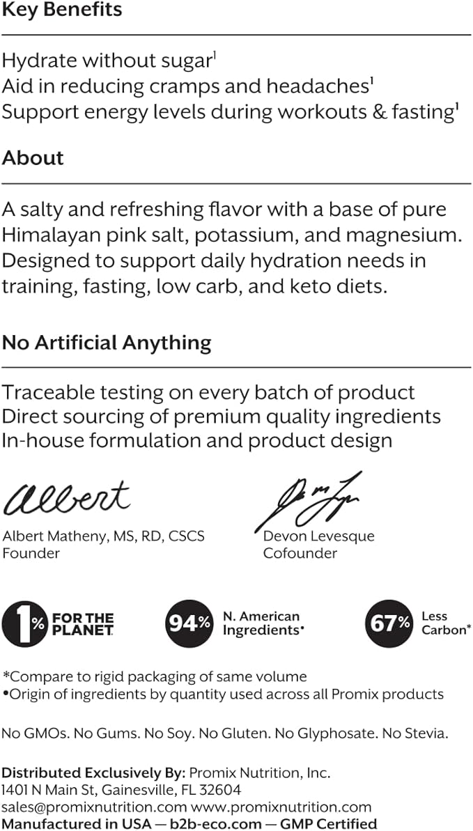 ProMix Nutrition Electrolytes Powder Hydration Packets - Himalayan Pink Salt, Magnesium, Potassium, Vitamin C - Salted Watermelon, Lightly Sweetened - 30 Servings (Pack of 30)