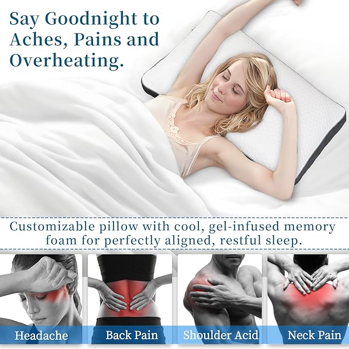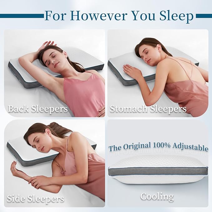 Original Adjustable Firm Pillow, Unique Bed Pillows for Sleeping,Comfort for Neck and Shoulder Pain - 750 Fill Power Down & 42D High Density Memory Foam Filling for Side,Back, Stomach Sleepers