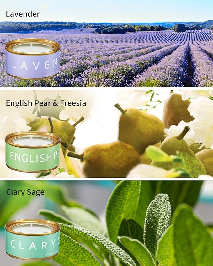 - Luxurious Fragrance Experience: From the fresh and fruity notes of English Pear & Freesia to the calming embrace of Neroli, the soothing scents of Lavender and Clary Sage create a relaxing atmosphere, while Vanilla and Jasmine Sambac add a touch of romantic allure, these aromatherapy candles adapt effortlessly to any occasion—whether it's a cozy night in or a festive gathering
