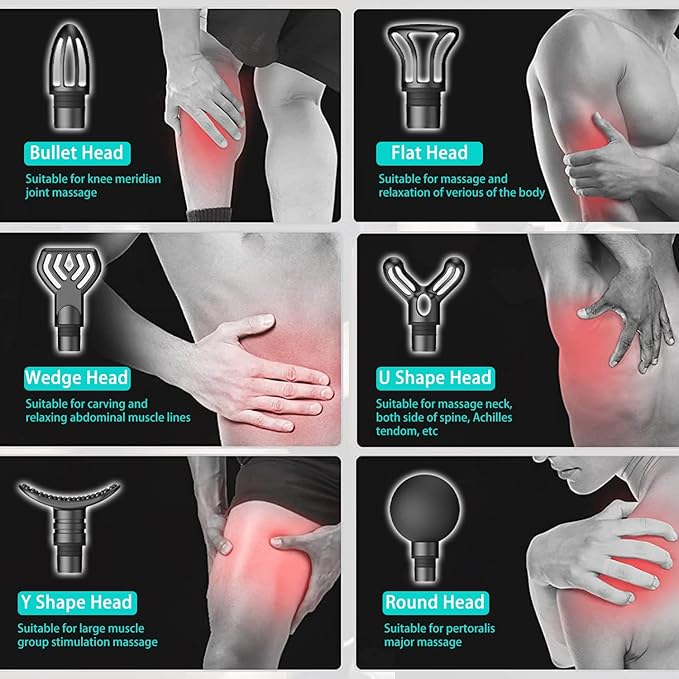 - Interchangeable Massage Heads for Versatile Use: Most muscle massage gun come with multiple interchangeable attachments, such as a ball, flat, or bullet head. These attachments are designed to target various muscle groups, enhancing the effectiveness of muscle relaxation, recovery, and pain relief.