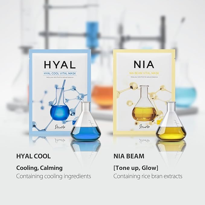 SHIONLE 10 Combo Pack A Vital Facial Sheet Mask, 5 Types Essence Korean Skincare Self Care Home Spa Treatment Face Mask, Hydrating Nourishing Soothing for All Skin Type