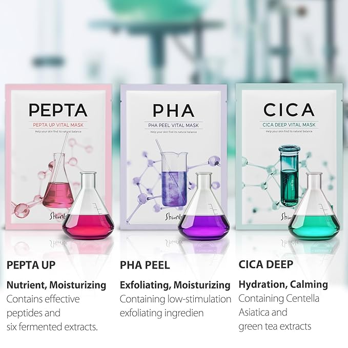- [10 PACK INCULDED] Combo A (Vital facial mask pack) / PHA (2Pack), NIA (2Pack), HYAL (2Pack), PEPTA (2Pack),CICA (2Pack)