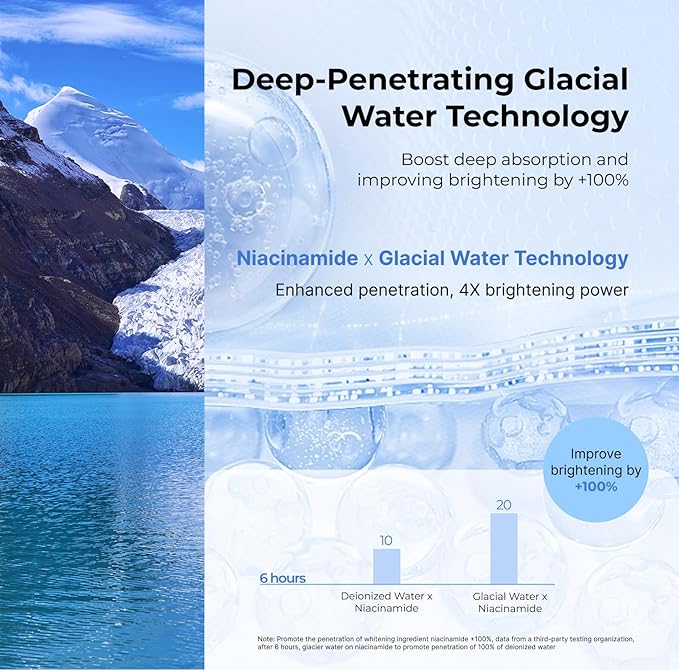 - High-Efficiency Radiance Boost: Formulated with 4% Niacinamide and Glacial Water, this mask deeply penetrates the skin, effectively reducing dark spots and enhancing the skin's natural glow with each use.