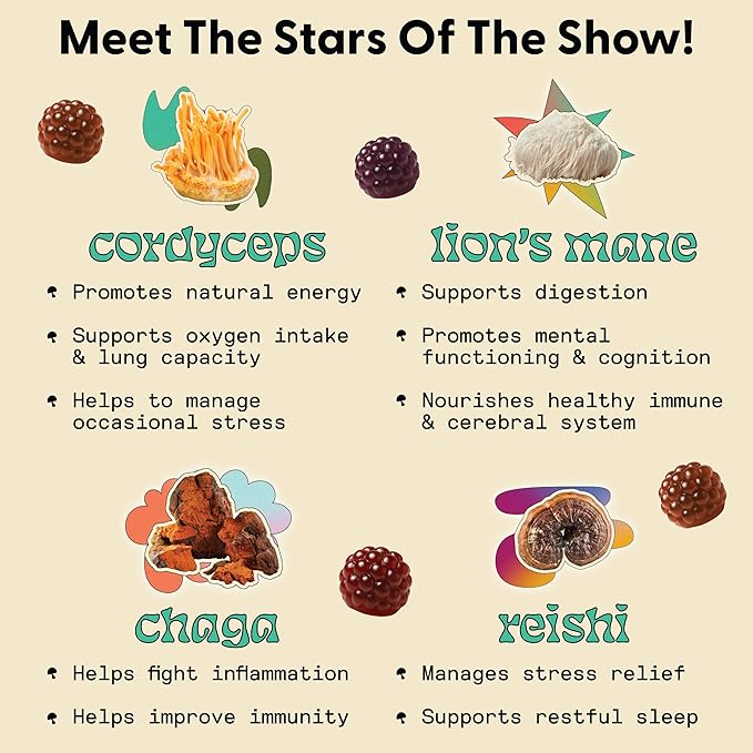 - ENHANCED WITH NATURAL HERBS FOR AN EXTRA LIBIDO BOOST - In addition to cordyceps & reishi, these strawberry gummies contain a carefully selected blend of herbs traditionally used as a natural libido booster for men & women. Horny goat weed is included to help promote sexual arousal and desire. Ashwagandha, an aphrodisiac, supports relaxation, lubrication, orgasm, and arousal. Schisandra and damiana round out the formula, working together to enhance sexual function and vitality.