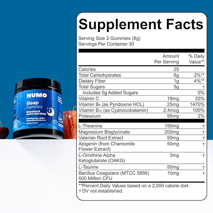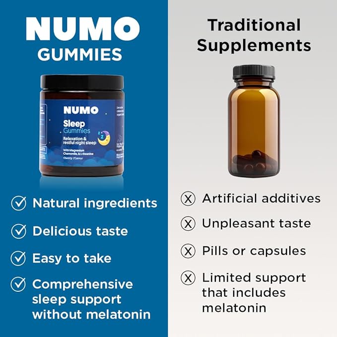 Numo Melatonin Free Sleep Gummies - Natural Sleep Aid with Magnesium, L-Theanine, Apigenin (Chamomile Extract), Taurine, VIT B6, Kombucha Culture - Non-Melatonin, Organic Ingredients - 60 Count