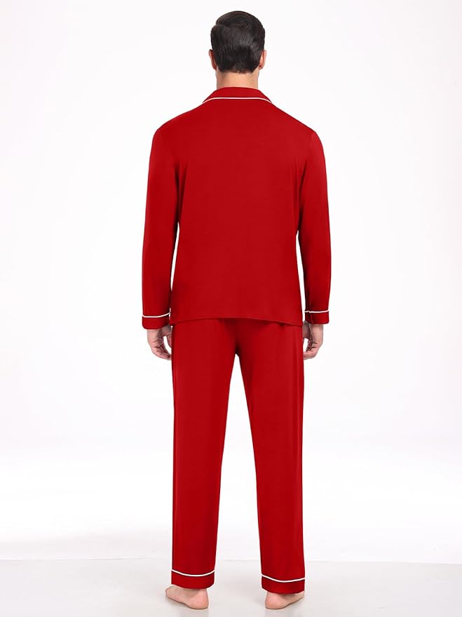 - 【Long Sleeve Button Up Top】: Our Pajamas for men features a button up shirt, notched collar, chest pocket and contrast piping that perfectly composes an elegant look, allowing every man to display a mature and confident charm when wearing this mens sleepwear.