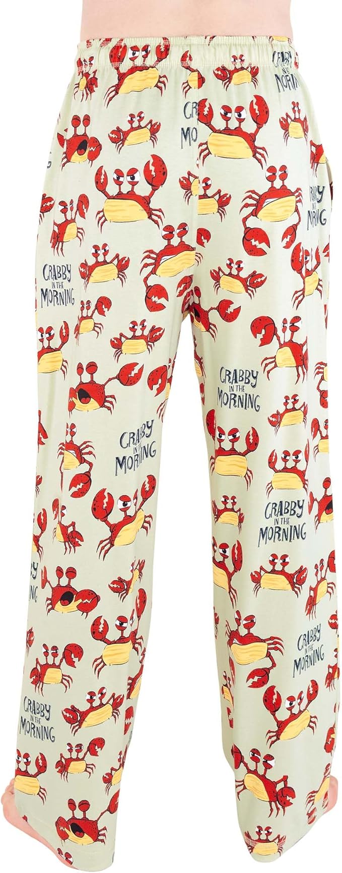 - FUNNY DESIGNS: This pair of pajama pants features a humorous crab design. These novelty pants are sure to make you laugh with their clever jokes.
