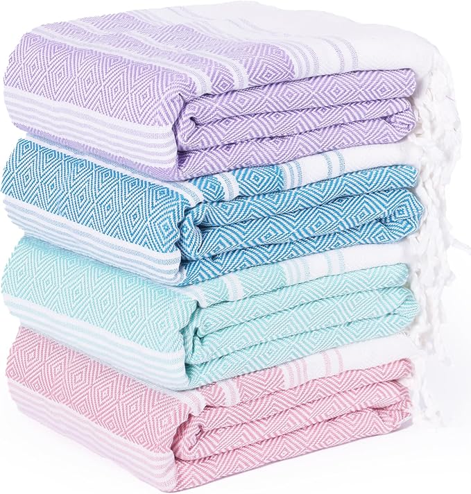 - MULTI USE: The turkish beach towel is destined to flourish your vacation for its versatility everywhere: beach, sports, yoga, pool, travel, bathroom, camping, room decor, etc. Besides, this beach towel has many styles, various colors and beautiful appearance. It is suitable for giving your family,lover, friends, colleagues, etc. on various festivals such as birthday, Christmas, Valentine's Day,Morther's Day etc