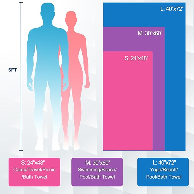 - ULTRA-SOFT FEEL: Each microfiber travel towel is crafted from premium material with smooth qualities akin to satin, offering a soft, smooth, and comfortable feel on your skin. It is super absorbent, odor-resistant, and remains fresh after drying.