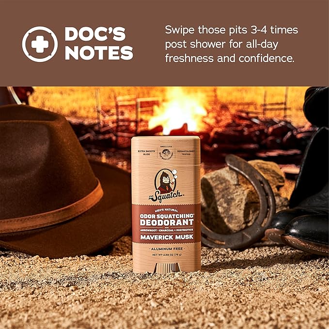 Dr. Squatch Natural Deodorant for Men - Odor-Squatching Aluminum Free - Maverick Musk (2.65 oz, 3-Pack)