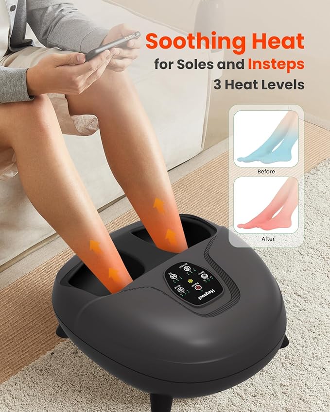 - Fits up to Size 14" : Heycool 2025 Shiatsu foot massager with heat can fit up to size 14, making it suitable for people with various foot sizes. The large space provides comfort and relaxation. Foot compression comes with detachable and washable foot sleeves to maintain clean.