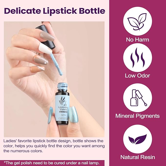 - High Quality & Healthy: Crafted with quality standards, Lavender Violets offers a salon-quality gel manicure experience at home. Our gel polishes are infused with natural resin, ensuring a safe and enjoyable application