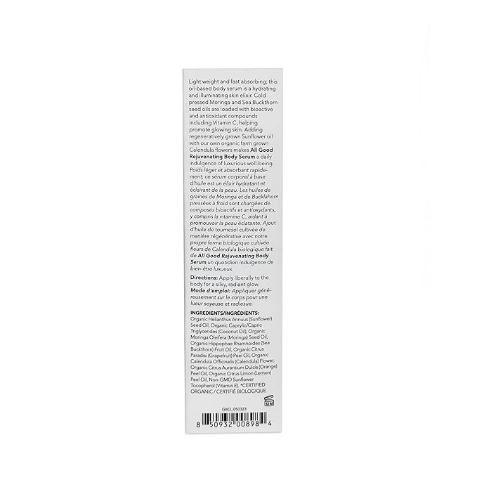 - DEEPLY NOURISHES AND HYDRATES: All Good Rejuvenating Body Serum is a superfood for your skin and the earth’s topsoil, infused with a potent blend of organic oils, including Moringa and Sea Buckthorn, this serum intensely moisturizes and replenishes your skin, leaving it soft, supple, and radiant.