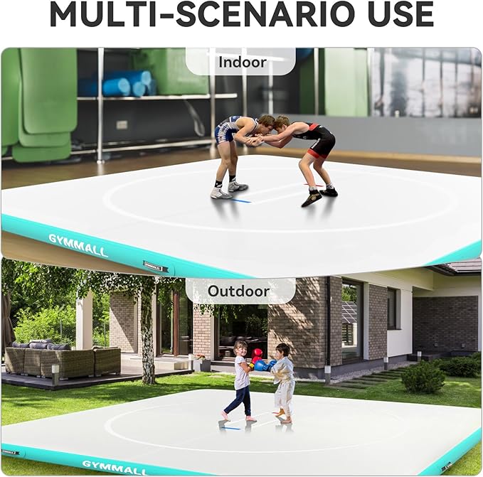 - Inflatable Model for Easy Storage: Inflatable wrestling mat is equipped with 600 W high-speed strong electric air pump with fast inflation, and can be used after finishing the inflation and closing the valve. When in a completely deflated state, the lightweight mint green mat can be easily folded and stored in the carrying bag, effectively saving storage space, easy to carry outside