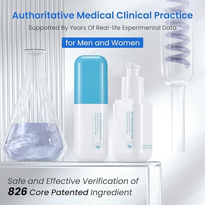 - [Scientifically Valid] Our core patented KX-826 ingredient is designed to block DHT, the main cause of hair loss. By preventing DHT from affecting your hair follicles, 826 helps restore healthy hair growth and reduces scalp oiliness. This breakthrough formula not only tackles hair thinning but also helps balance sebum production for a healthier scalp. Experience the rejuvenating effects and enjoy revitalized hair with KX-826.