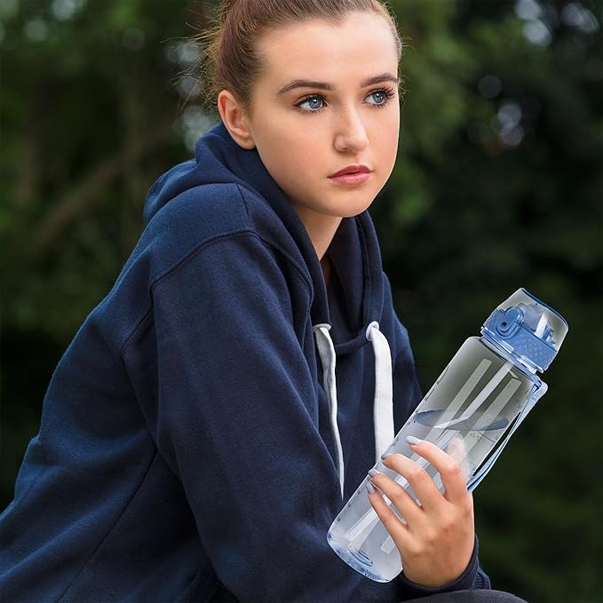 - 【𝐐𝐮𝐚𝐥𝐢𝐭𝐲 𝐃𝐞𝐬𝐢𝐠𝐧】This clear sports water bottle not only has a leak-proof cap, but also has a flip-lock, which allows you to hold or flip the bottle into your backpack without worrying about the water spilling out of the bottle, making it a safe choice for men, women, children, adults, and seniors.