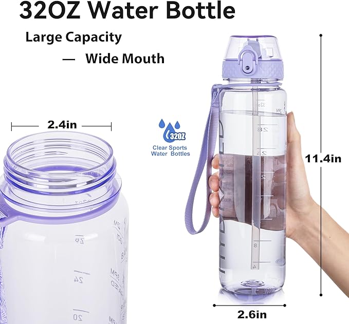 - ใ๐๐๐ญ๐๐ซ๐ข๐๐ฅใThe 32 oz clear water bottle is made of Tritan Premium Co-Polyester Plastic, which is BPA free, ensuring that this sports water bottle won't retain odors, harmful chemicals or strange tastes.