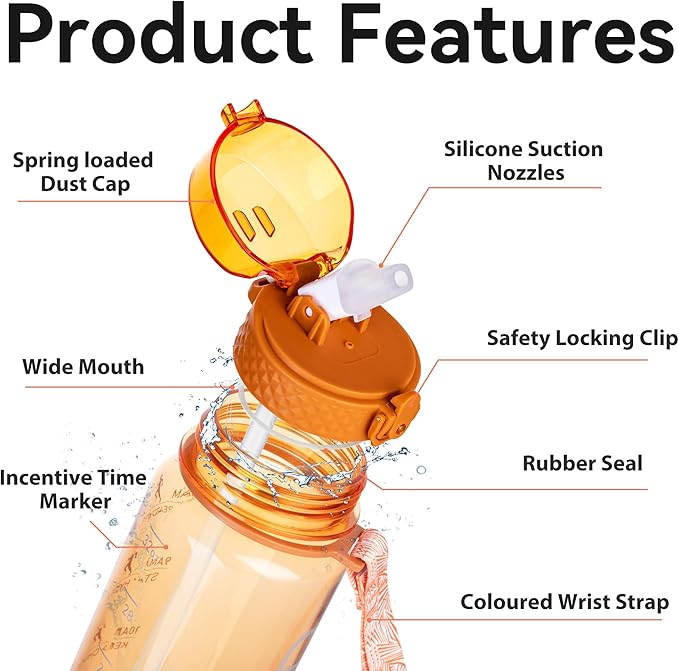 - 【𝐐𝐮𝐢𝐜𝐤 𝐇𝐲𝐝𝐫𝐚𝐭𝐢𝐨𝐧】The clear sports water bottle pops open automatically with the push of a button, and its frosted texture gives you a better one-handed grip for quick and easy hydration!