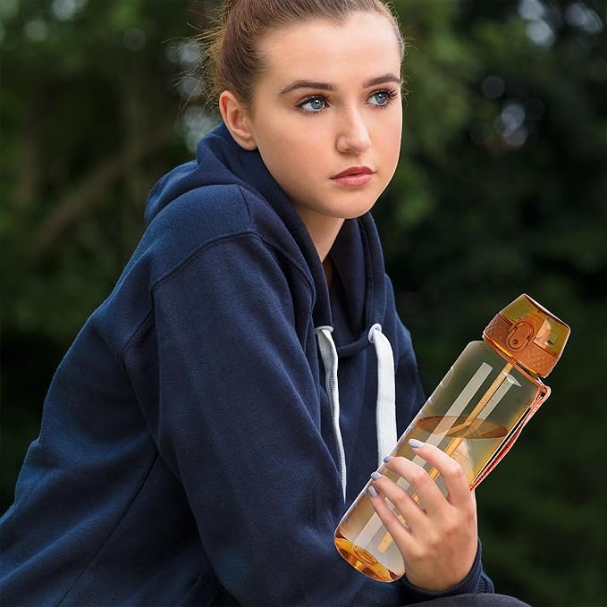 - 【𝐌𝐚𝐭𝐞𝐫𝐢𝐚𝐥】The 32 oz clear water bottle is made of Tritan Premium Co-Polyester Plastic, which is BPA free, ensuring that this sports water bottle won't retain odors, harmful chemicals or strange tastes.