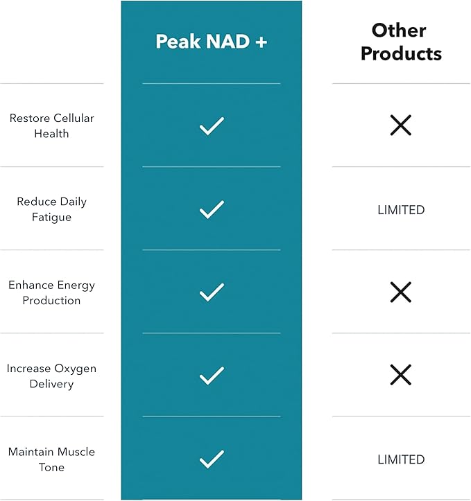 - ENHANCES CELLULAR VITALITY: Supports optimal NAD+ levels to boost cellular energy and function, contributing to overall vitality.
