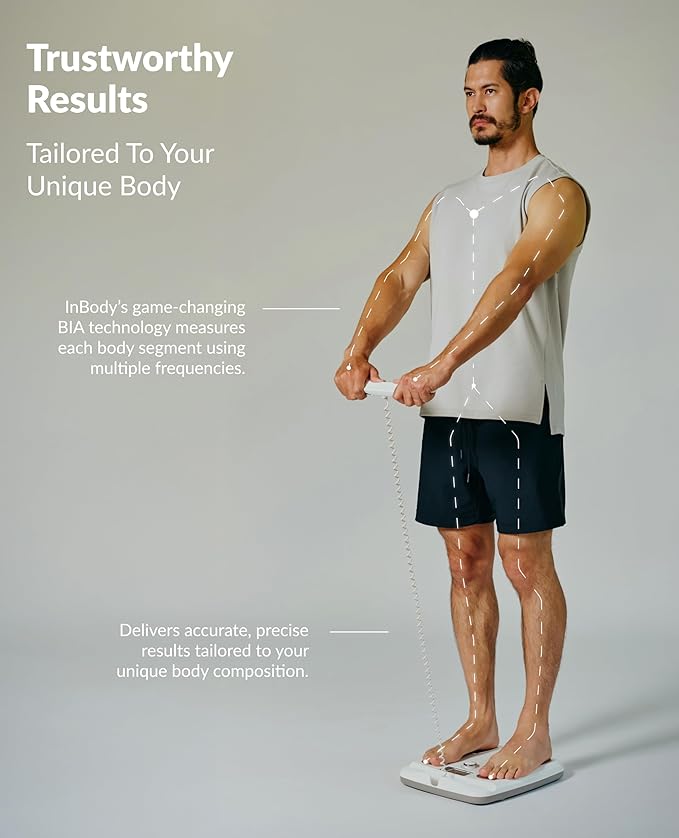 - PROFESSIONAL TECH, AT-HOME: This bioimpedance scale utilizes the same bioelectrical impedance analysis technology found in InBody’s professional models. Unlike most body composition monitors that use empirical estimations, the H20’s advanced BIA technology measures each body segment to deliver accurate, precise results.