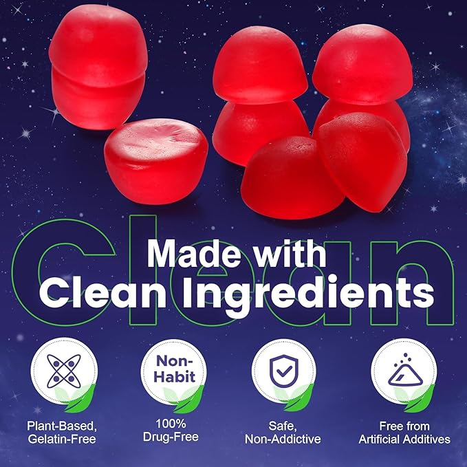 - Non-Habit Forming: Our gummies are safe for regular use with no risk of dependency, allowing you to enjoy restful sleep without side effects.