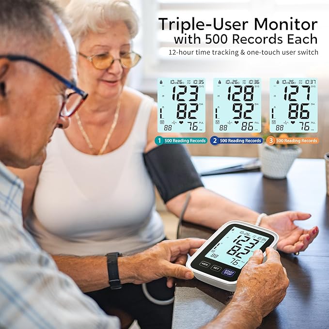- Share Love with Loved Ones, Enjoy Technology! - AQESO BP monitor features a special 3-user mode with a memory storage capacity of 3x500 sets, which is the highest amount available in the market. With the ability to track blood pressure data by specific date and 12-hour time, manual recording of measurements is no longer necessary. AQESO BP machine also comes with crush-resistant packaging to protect the machine, making it a perfect gift for elderly family members.