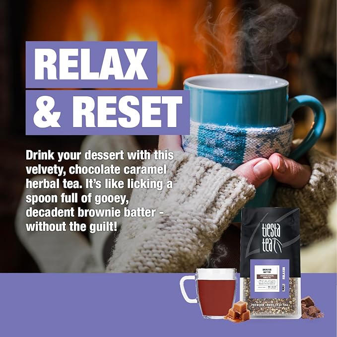 - DECADENT FLAVOR PROFILE: Indulge in the rich, chocolatey goodness of our brownie batter herbal tea. This expertly crafted blend delivers a smooth and satisfying experience with every sip. Enjoy the luscious taste of chocolate and caramel notes that will satisfy your dessert cravings without any of the guilt. Whether you prefer it hot or iced, this tea provides a comforting and delightful beverage any time of day.