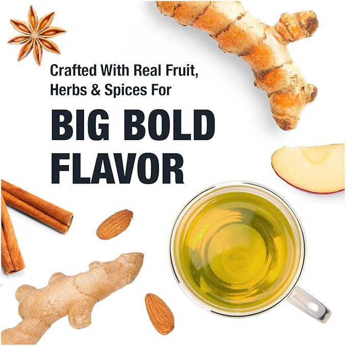 - PREMIUM LOOSE LEAF INGREDIENTS: Crafted from a premium blend of natural ingredients, including turmeric, ginger, cinnamon, and ashwagandha, this herbal tea offers a powerhouse of wellness in every sip. The addition of apple, nutmeg, and sliced almonds creates a symphony of flavors, while star anise and cloves add a delicate spice. Please note that this tea contains nuts.