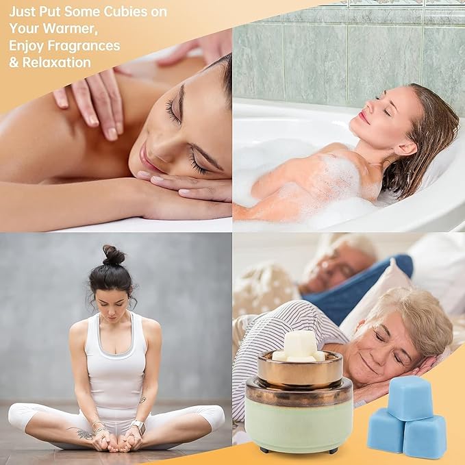 - Nature Plant-Based Wax Melts: The wax melts are selectly made with premium natural soy wax & quality essential oils.Scented wax melts are Paraffin-Free, Flame-less, Smoke-Free and safe for use around kids and pets