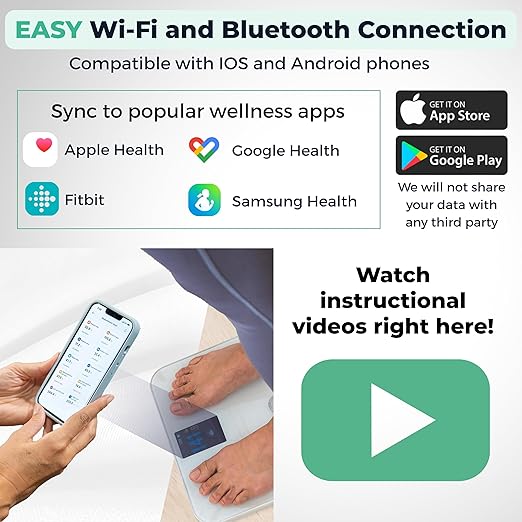 - Wi-Fi and Bluetooth-Enabled Connectivity: Track your fitness progress anytime, anywhere with seamless Wi-Fi and Bluetooth connectivity. Automatically upload health metrics to the cloud, eliminating the need for manual syncing. Compatible with iOS and Android, this scale supports up to 200 users, making it ideal for group settings. Use it alongside fitness apps, trainers, or exercise equipment for personalized health monitoring and goal achievement.
