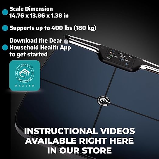 - Sturdy Design & Extended Battery Life: Built with durability in mind, this smart scale features a large 3.5-inch TFT screen for clear and easy-to-read results. The robust platform (14.76 x 13.86 x 1.38 inches) supports up to 400 lbs/180 kgs, providing stability and comfort for users of all sizes. Powered by a high-capacity 800mAh Li-ion battery, it offers exceptional longevity, reducing the need for frequent recharges. This ensures uninterrupted health tracking, allowing you to monitor your wellness progress consistently without worry.