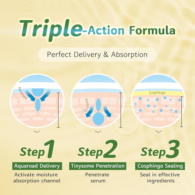 - 【Triple-Action Formula for perfect delievery and absorption】1.Aquaroad delievery: Instant activation of moisture absorption channel 2. Tinysome Penetration: Penetrating serum allows full delievery 3. Cosphingo Sealing: Seals in effective ingredients