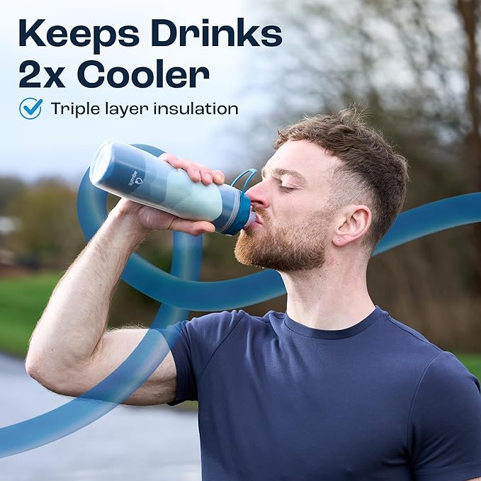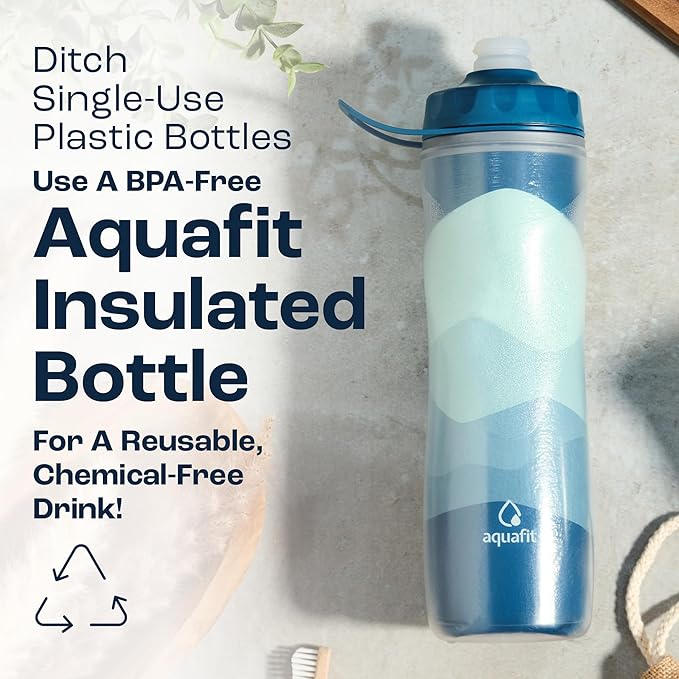 - Tri-Layer Insulated Water Bottle - The Aquafit sports water bottle boasts triple-wall insulation (inner PP layer, insulation layer, outer PP layer), keeping your drinks 2x cooler for longer. This sports bottle is lightweight yet strong and durable. 100% BPA-free and food-safe.