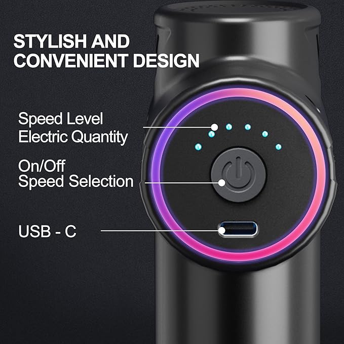 - 【Small but Powerful】This pocket-sized deep tissue massager has a 35-pound stall force and weighs 0.88 pounds, with a balanced strength and size. The lightweight and durable body is equipped with a suitable T-grip, which can easily reach the whole body and relieve body pain immediately. Adopts independent noise reduction technology. Low noise (35dB - 55dB), can be used in the office or gym without causing disturbance.