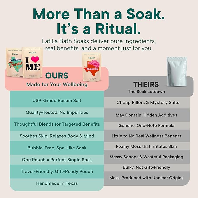 - AROMATIC ESCAPE - Transform your bath into a serene oasis with the unique scent trio in our Soaks set of 3 - Texas, Howdy, I Heart Me. From the crisp freshness of oats and honey to the sweet honeysuckle, each epsom salts elevates your bath experience.