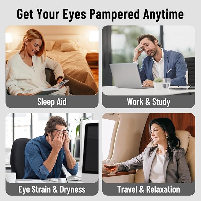 - RELIEF FOR YOUR EYES AND VERSATILE USE: By warming your eyes, it helps promotes eye blood circulation to effectively alleviate Dry eyes, Eyestrain, Styes, Dark Circle, Pink Eyes, Relive Eye Pressure